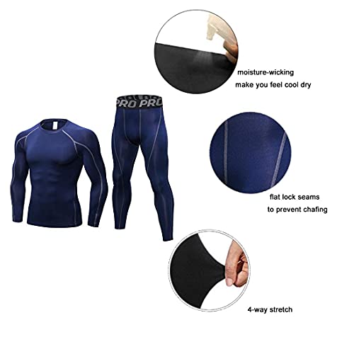 LANBAOSI Mens Thermal Underwear Set Long Sleeve Skins Base Layer Compression Top and Bottoms Long Johns for Cycling, Skiing, Outdoor Sports