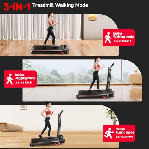 【Powerful But Quiet Treadmill】Keep Fun treadmill is equipped with a powerful 2.5HP low-noise motor. Which can withstand loads up to 300 lbs. The walking pad foldable enables speeds ranging from 0.8 to 8.0 km/h (0.5-5 mp/h). Manual Incline adjustment can meet the fat burning effect of 50% higher than traditional treadmills.