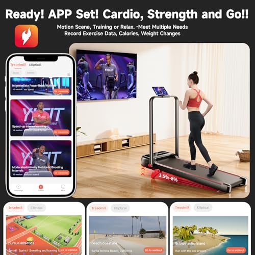【KEEP FUN Treadmill with APP】 Connect the Ypoofit app to link our Home Office Treadmill through Bluetooth, so you can join course training and more realistic running track. Use the phone holder to watch videos or chat with friends. The remote control is convenient to adjust the speed of movement and stop instantly. Smart Ypoofit APP control is perfect to record exercise data and running with other users.